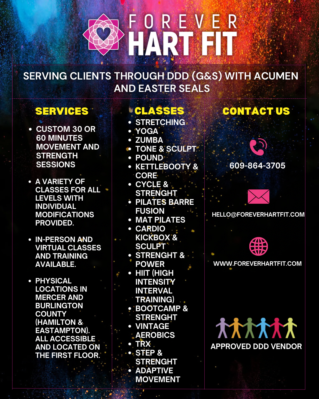 At Forever Hart Fit, we are proud to be approved by the State of New Jersey to work with adults 21 and up with disabilities, serving clients through DDD (G&S) with Acumen, including Easter Seals.
